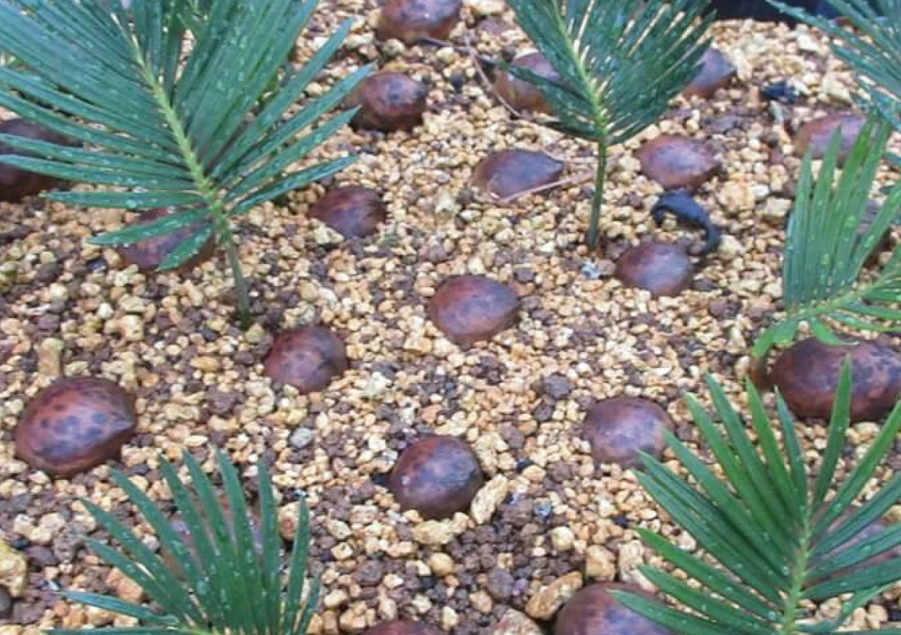 元々は南の国の植物、ソテツ。四季の温度差の激しい関東の風土で育てるためには、この地域で自生するチカラのある種から育てるのが一番。当ファームでは、たくさんの親株から自然に取れる種から、ひとつずつ丁寧に、双葉から育てております。最初の2年間はびっくりするほど可愛らしいままの姿のソテツ。3~4年生になると、ステキなインテリアとして活躍してくれます。
