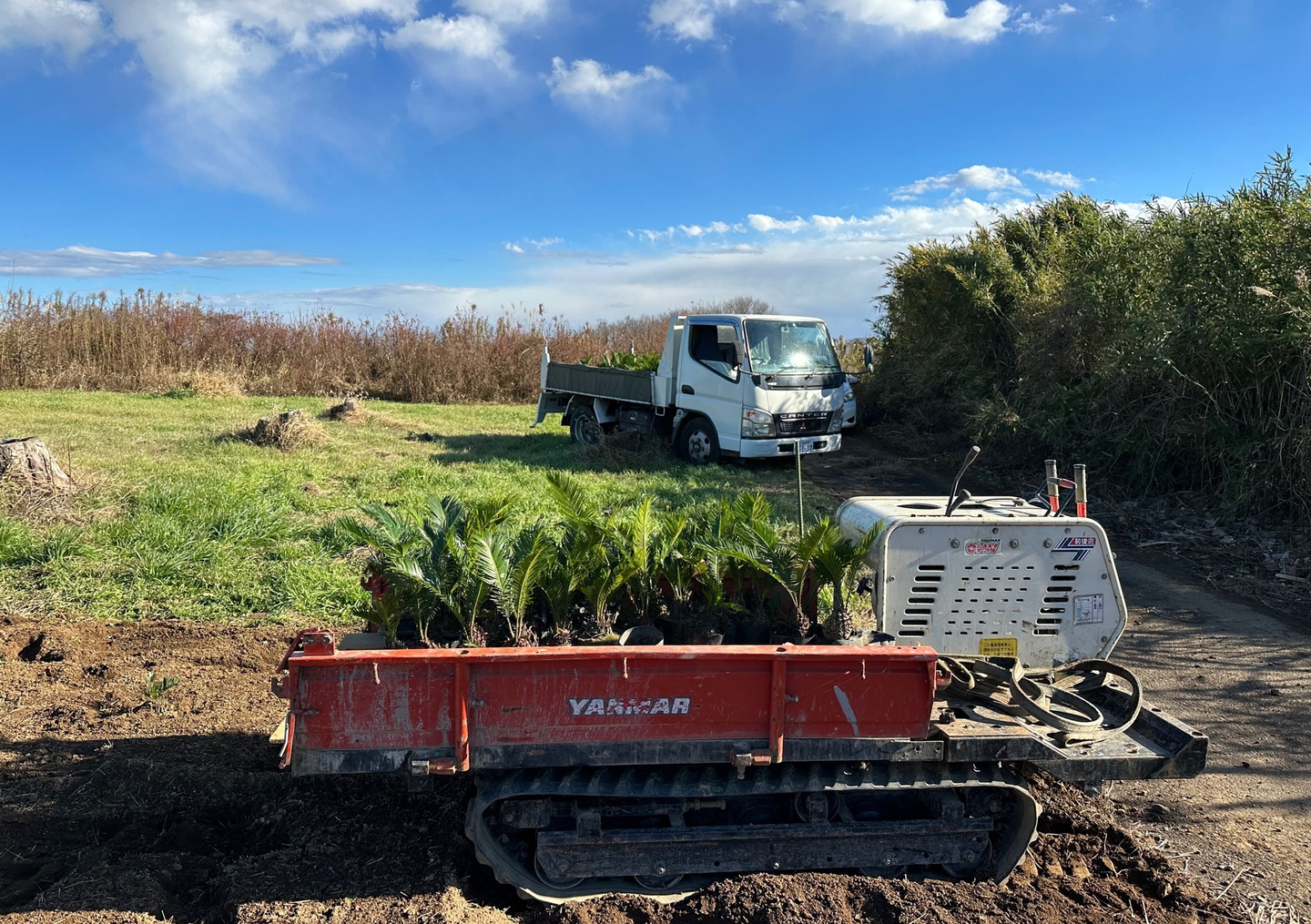 トーマスファームは、茨城県は土浦市の筑波山のふもとにある小さな農村集落、粟野町というところにあります。かつては栄えた農業振興地域でもあったこの地域。昨今の高齢化や、農業離れが相次ぐ中で、たくさんの農耕放棄地があちこちに点在している地域でもありました。しかし、この粟野町は、茨城県内でも温暖な県南地域に位置し、周りを囲う山々の影響でとても温暖な気候に恵まれています。当ファームでは、そんな地域の特性を数年にわたって調査。そして、南房総は館山市にある老舗ソテツ農園から、唯一茨城県内栽培に適した環境であるとお墨付きをもらった農園でもあります。
